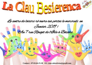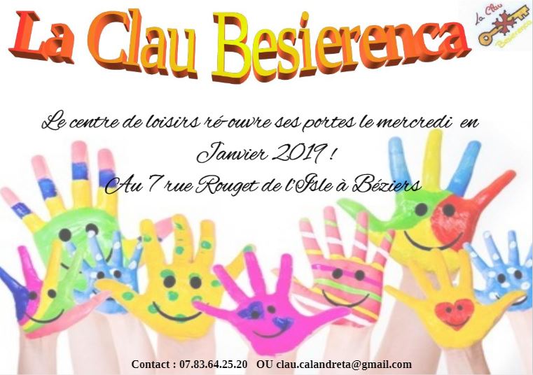 Nous avons le plaisir de vous annoncer qu’à partir du mercredi 9 janvier 2019, le centre de loisirs la Clau Besierenca ré-ouvrira ses portes.